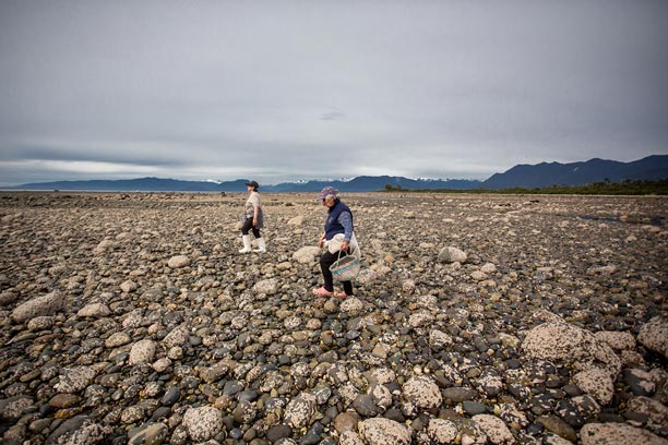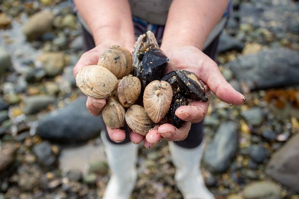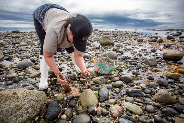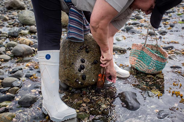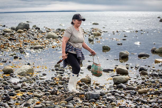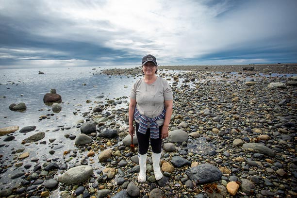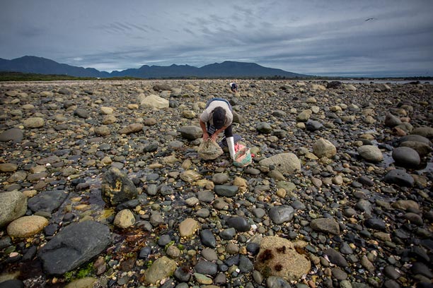 En las costas de la Península de Comau, la recolección de mariscos de orilla es parte fundamental de la vida y la economía local. Una de nuestras socias desarrolla este oficio recorriendo el borde costero, recolectando mariscos de manera artesanal y respetuosa con el entorno, siguiendo prácticas transmitidas por generaciones.