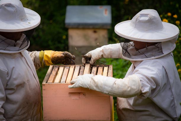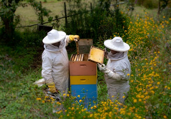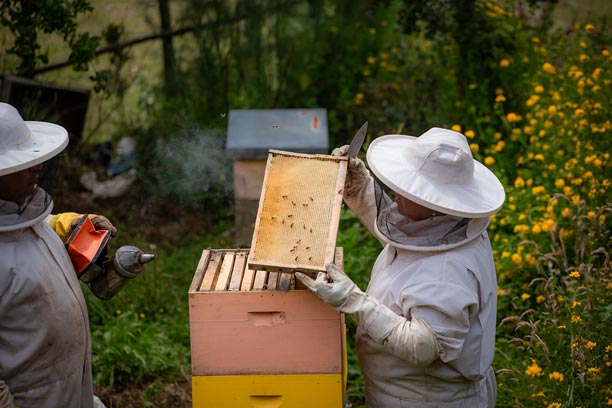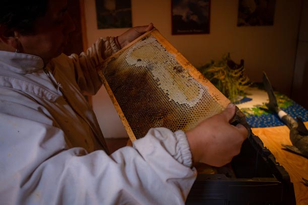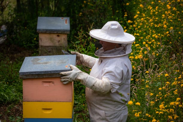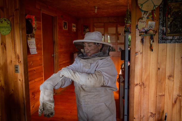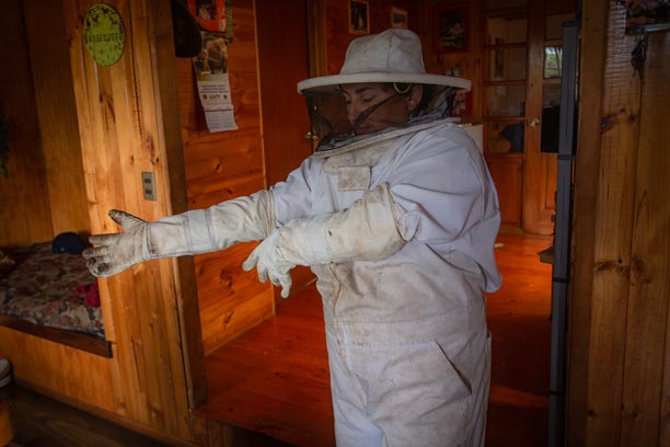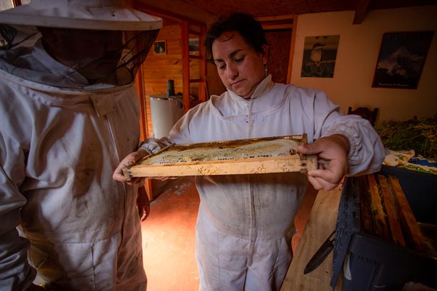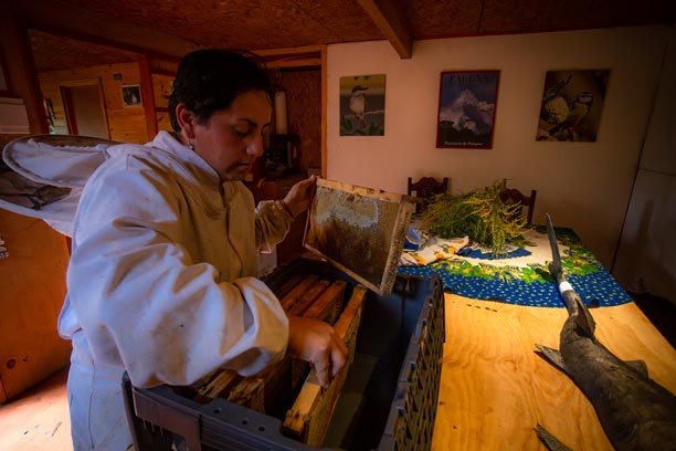 En la Península de Comau, la producción de miel forma parte de los oficios que vinculan directamente a la comunidad con el entorno natural. Una de nuestras socias desarrolla el trabajo apícola cuidando sus colmenas y recolectando miel de manera artesanal, en un territorio rodeado de bosque nativo y flora diversa.